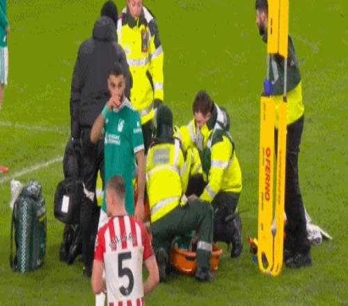 通过数分钟的医治,远藤航被担架抬出场外,斯洛特被迫调整,乔-戈麦斯紧迫出战。
