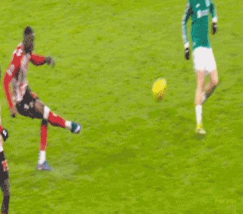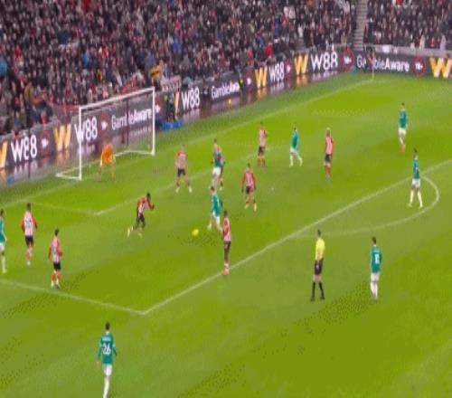 第33分钟,加克波左路打破下底倒三角传球,维尔茨停球脱节趁热打铁,随后起脚低射远角,击中立柱弹出。