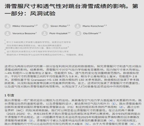 - Frontiers in Physiology(2025). "Influence of suit size and air permeability on performance in ski jumping. Part I: wind tunnel measurements."